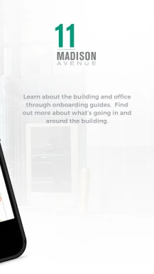This application is intended for employees that work in 11 Madison and their visitors. Important information about the building can be found on the dashboard, which dynamically changes throughout the day. The app allows employees frictionless access into the property and will enable them to invite guests to the property as well. Additional modules are available including, amenity reservations, events, community information, etc.