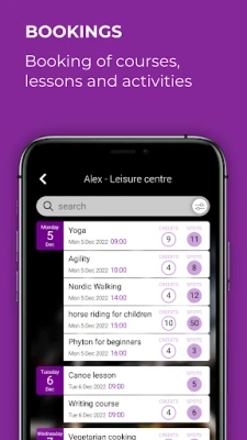 - Booking courses / classes from the app