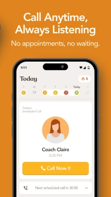 6. Flexible Scheduling: set up calls at specific times if you prefer scheduled sessions—CLAiRE will call you right on time.