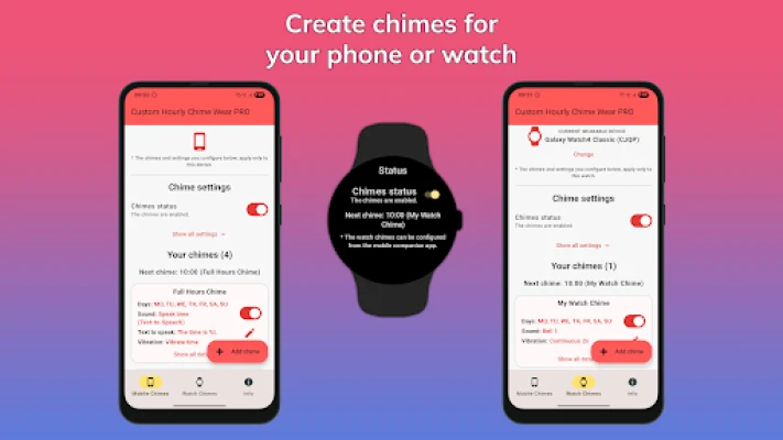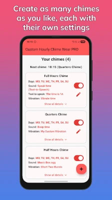 ⚙️ Multiple Chime Profiles: Create different chimes for different needs or devices. The chimes and settings for your mobile device and any Wear OS watches connected to it work independently.