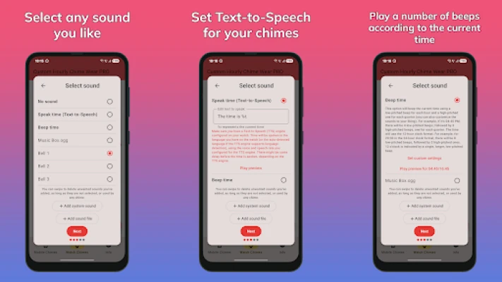 🗣️ Text-to-Speech: Configure your chimes to announce the time or read out custom text like "Begin focus session" or "Drink water."