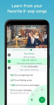 • Learn Korean words from your favorite K-pop songs.