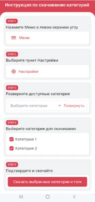 После выбора предпочитаемых категорий нажмите кнопку "Загрузить отмеченные категории и теги", чтобы начать загрузку выбранных категорий.
