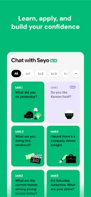 Master Korean speaking skills with Seyo, the ultimate app for learning Korean through fun, real-life conversations. Designed for learners of all levels, Seyo helps you practice speaking Korean naturally while improving your grammar and vocabulary. Start today with a 7-day free trial and experience how easy and engaging learning Korean can be!