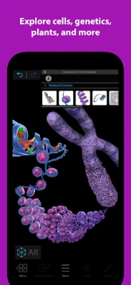 Simple controls let you study dozens of detailed 3D models, including DNA and chromosomes, prokaryotic and eukaryotic cells, and plant tissues.